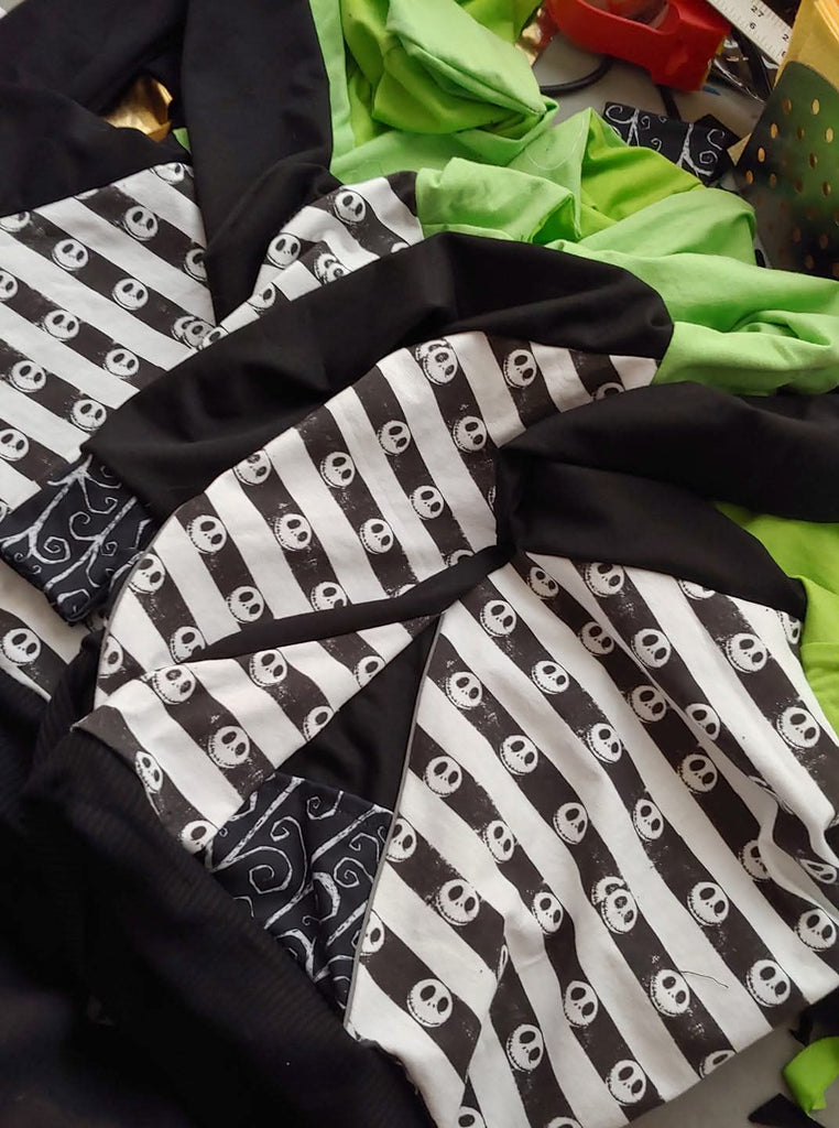 Oogie Jack Hoodie for kids Nightmare Before Christmas Lime Green and Monochrome Handmade Halloween Embroidery Pockets