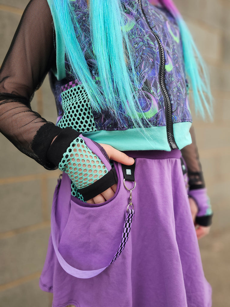 Twirly skirt with pockets. Colors can be can be lilac,purple,black or aqua. LEAVE A NOTE ON SIZE AND COLOR CHOICES